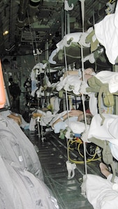 The 34th Aeromedical Evacuation Squadron has only been in existence for five months, but is already making a mission impact as part of the 302nd Airlift Wing. Tech Sgt. Michelle Gray and Staff Sgt. Rebecca Diaz, two of the squadron's AES medical technicians deployed August 29th as part of a rainbow
