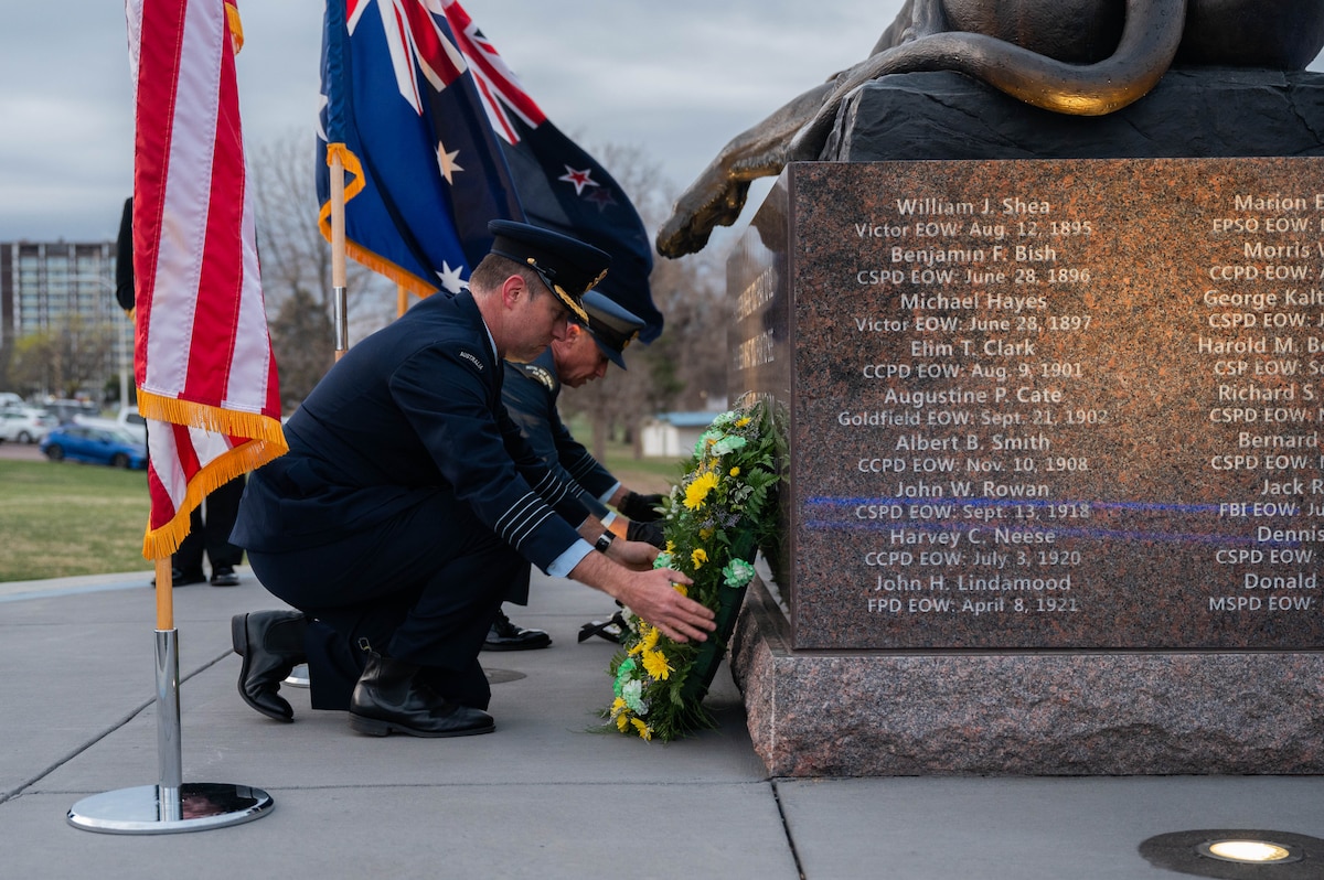 COLORADO SPRINGS, Colo. -- Capt. J Acheson, 302d Airlift Wing chaplain, joined members of the U.S. Armed Forces, Australians, New Zealanders, other allied military services and civilians gathered on ANZAC Day to remember and recognize fallen servicemembers 25 April. As part of the ceremony Acheson delivered the invocation, a prayer of remembrance and the benediction.